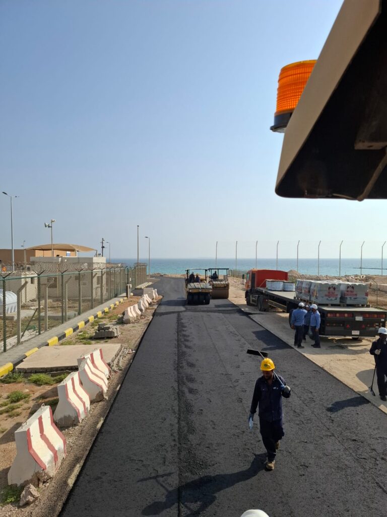 بعد ذلك يتم تنفيذ طبقات الأسفلت باستخدام معدات حديثة تضمن توزيعاً متساوياً وجودة عالية، مع الالتزام بكافة المعايير الفنية المطلوبة.